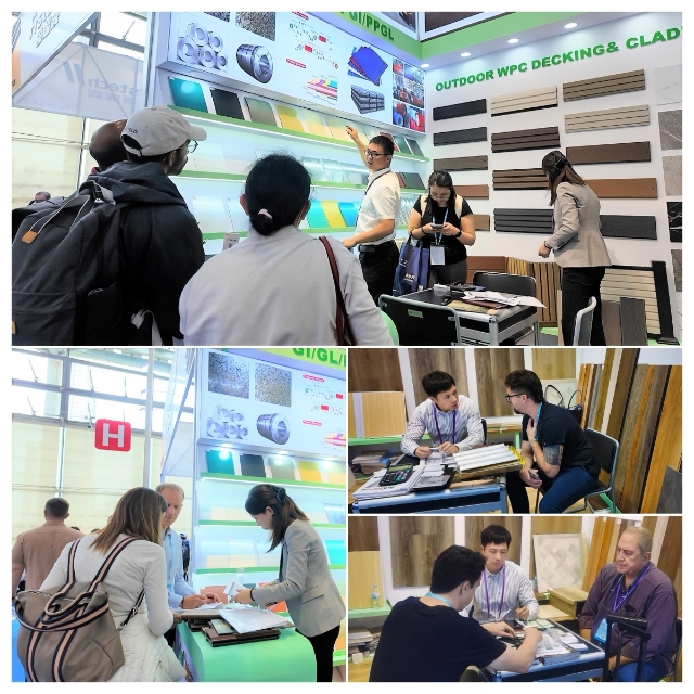 在建材展区,同样亮点纷呈。安粮以“适配性”和“实用性”赢得客户认可。展区重点展示的室内地板、墙板及格栅等产品,可实现“墙地一体化”装修,为客户提供高效、整体的空间解决方案。其中,UV亮面墙板因安装便捷省时的特点,成为现场咨询量最高的产品之一。值得关注的是,“波浪瓦” 作为本次展出的核心亮点产品,凭借其卓越的防水与排水性能、隔热与保温、防火阻燃等特性,吸引了来自南美和非洲区域的多位客户,目前已与阿根廷、津巴布韦和几内亚等国客户达成初步合作意向。